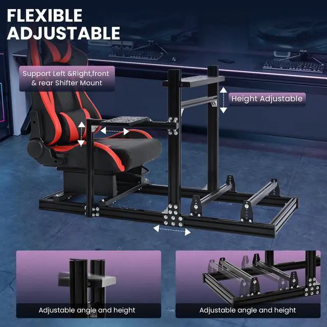 MaterialThe racing simulator is made of 30 x 60 mm strong and durable high-strength aluminium alloy, which can maintain stability during the race and is suitable for long-term use.