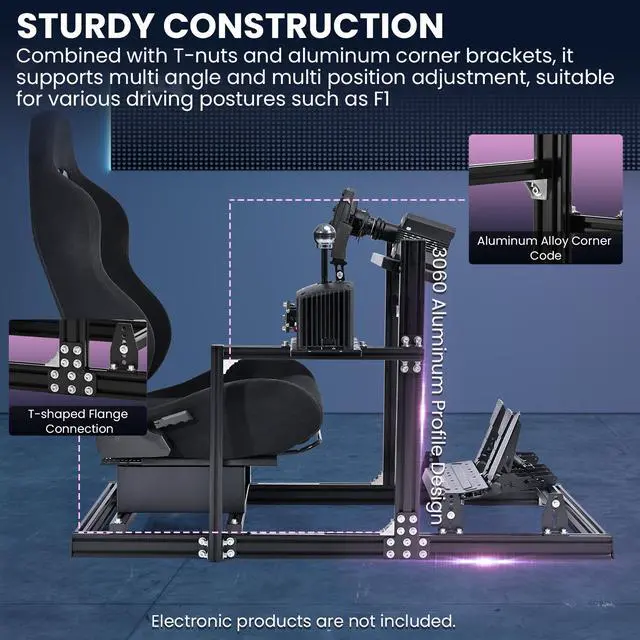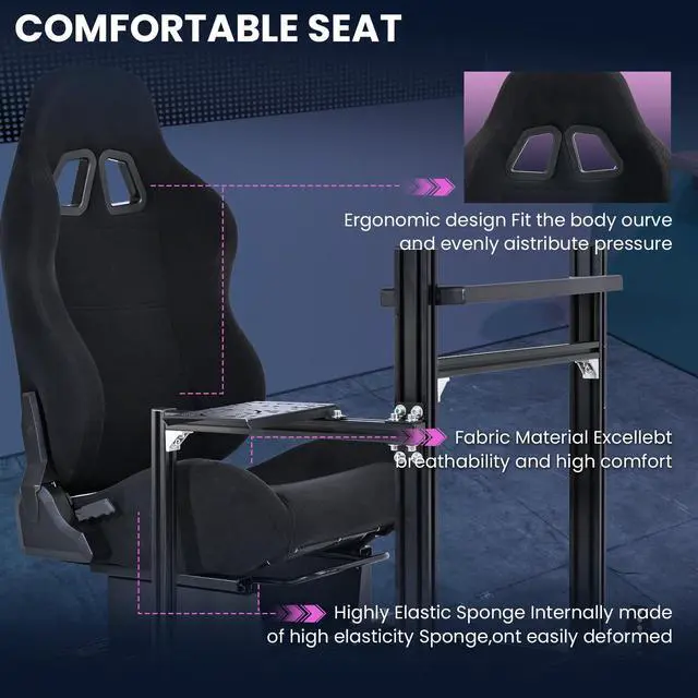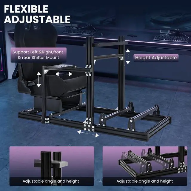 More Stable StructureThe cockpit of this racing simulator is made of solid aluminum profile, with increased support bars make the entire simulation racing device more stable, support more powerful force feedback, can bring you a better gaming experience