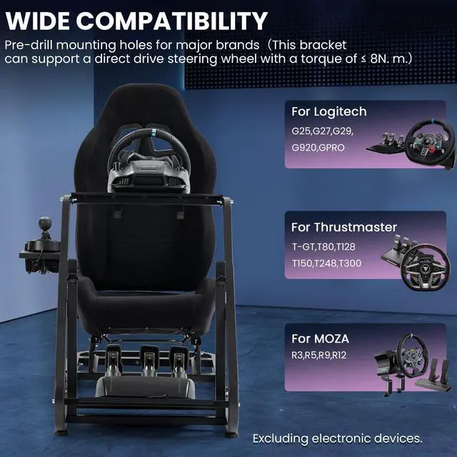 Versatile CompatibilityThe steering wheel cockpit is compatible with most gaming devices on the market: Logitech, Thrustmaster, Fanatec, moza racing other related steering wheels, racing pedals, controllers, fixture handbrake