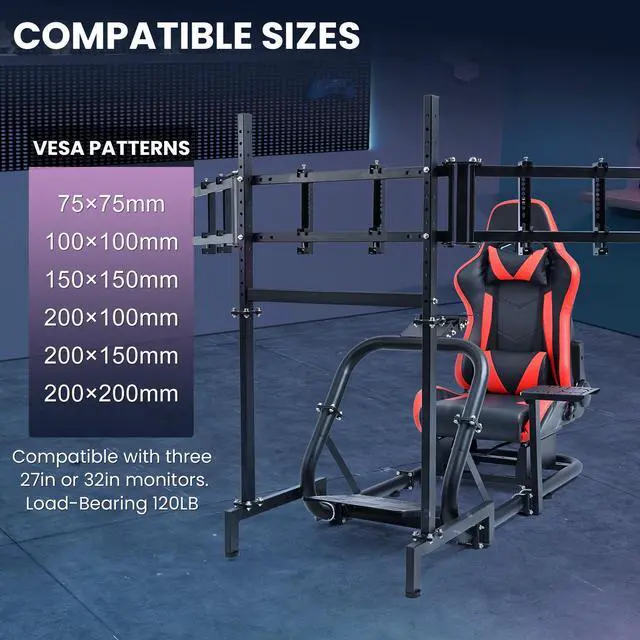 Mountable TV mount: the monitor stand can hold up to 3 screens to allow the ultimate immersion in the game, and the angle between the 3 screens can be adjusted as desired. The crowning point of design