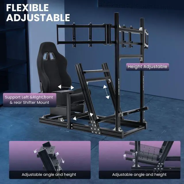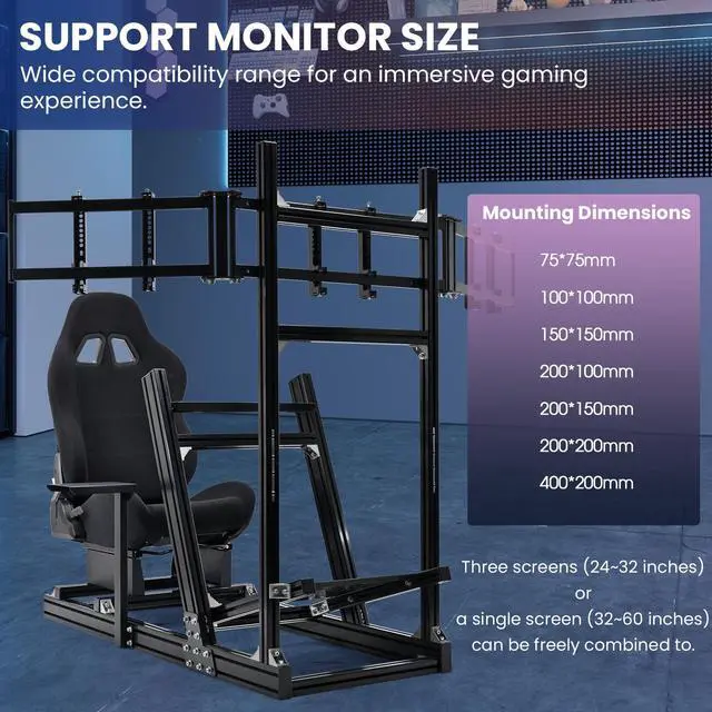 Flexible Triple Monitor StandIt supports 3 displays ranging from 24 - 32 inches, and the stand's height and angle are adjustable. With a sturdy aluminum construction, it has a stable load - bearing capacity, providing you with an immersive racing view