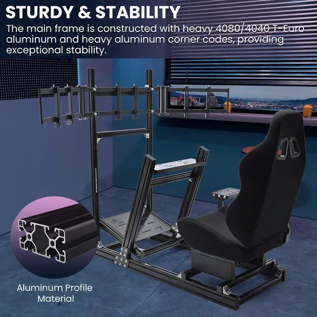 Sturdy Aluminum ConstructionThis 8040 racing cockpit is constructed with premium aluminum profiles for outstanding strength and durability, while offering a premium look and feel. Its sturdy construction ensures stability during intense races