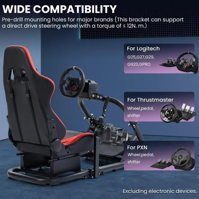 High CompatibilityUniversal driving simulator cockpit is almost suitable for Logitech, Fanatec, Master of Truth series racing steering wheels, pedals and gears. Suitable for direct drive steering wheel and TV bracket mounting, support DIY drilling