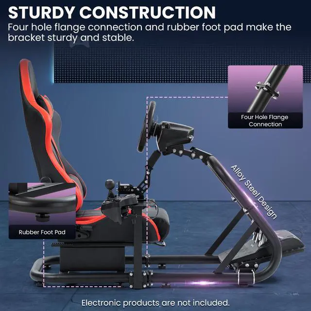 Design & MaterialRacing simulator cockpit is designed with 50*50mm large round tube, 4-hole flange structure connection, stable and sturdy