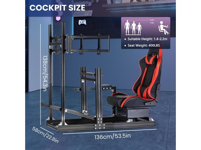 Minneer 8040 Aluminum Profile Racing Simulator Cockpit with Triple Monitor Mount and Red Seat,Fit for Logitech/Thrustmaster/Moza Direct Drive Steering Wheel , Universal Adjustable Multi Cockpit