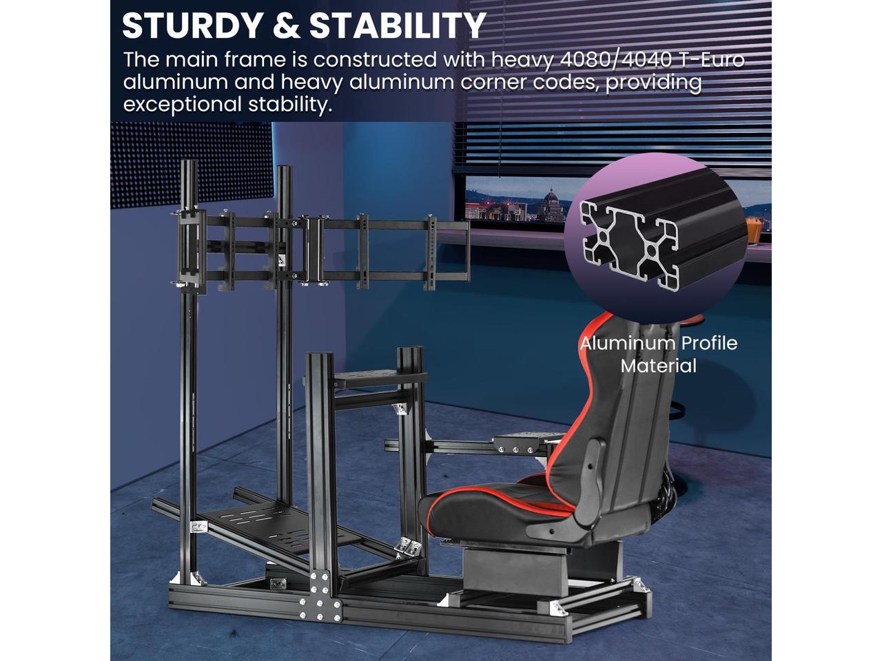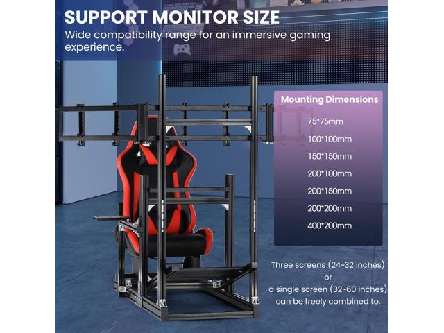 - Triple Monitor Stand:All-in-one design, support mounting monitor.The monitor stand adds up to three screens to the original product, giving you a better view of the game and making your gaming experience more immersive