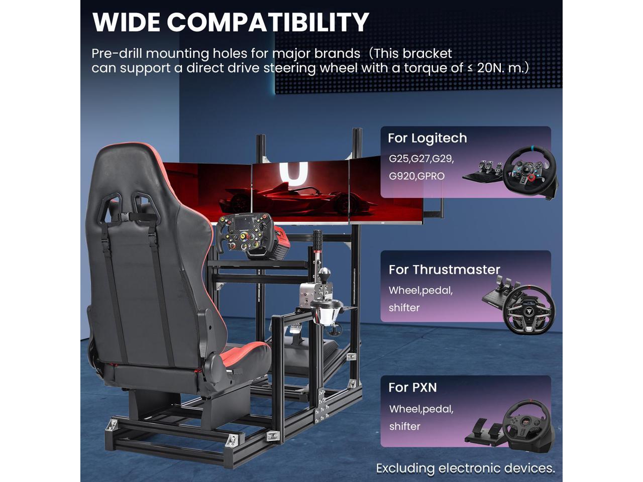 - Adaptable Devices:This sim racing cockpit can be adapted to most of the popular brands,fit for Logitech Pro Racing Wheel G29 G920 G923