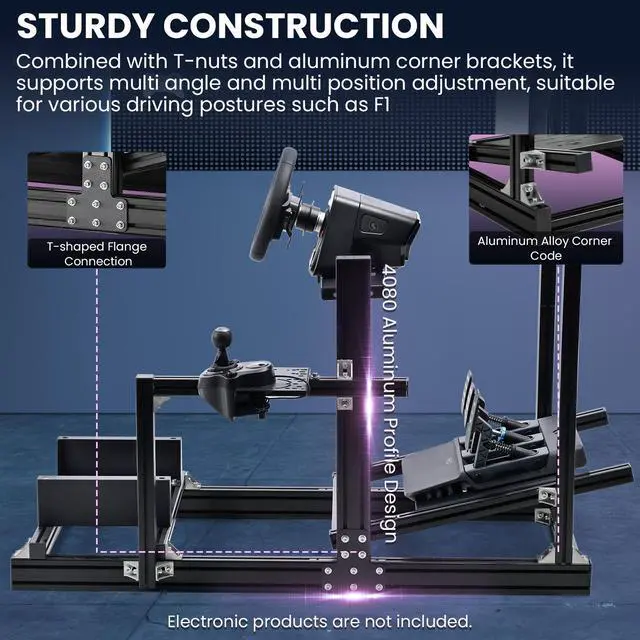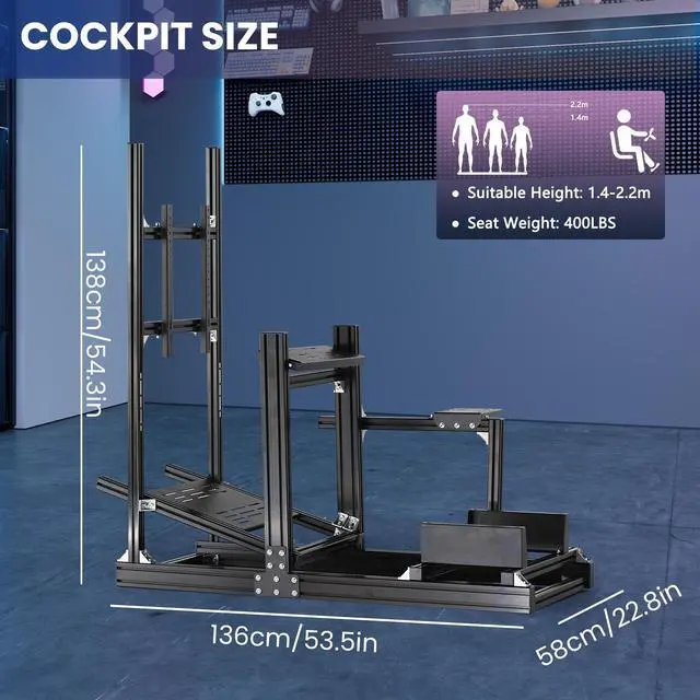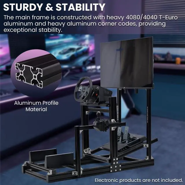More Stable & ProfessionalThis racing simulator cockpit is made of 40 × 80 mm solid aluminum profile, the support bar is added to the joystick position to make the whole product more stable. It can support stronger force feedback and bring you a better gaming experience.