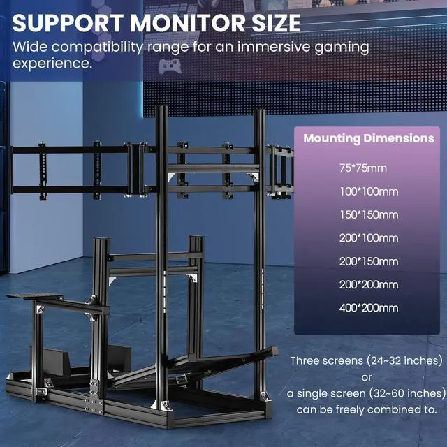 Triple Monitor Stand: All-in-one design, support mounting monitor. The monitor stand adds up to three screens to the original product, giving you a better view of the game and making your gaming experience more immersive.
