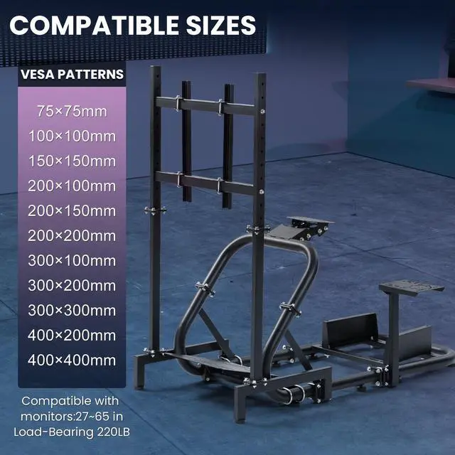Detachable Ultra-Load Monitor Mount: Heavy-duty stand supports 27-65" screens (up to 220 lbs) across 12 VESA patterns (75x75mm to 400x400mm). Reinforced structure ensures stability for immersive gaming experiences