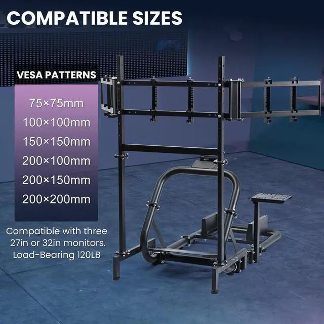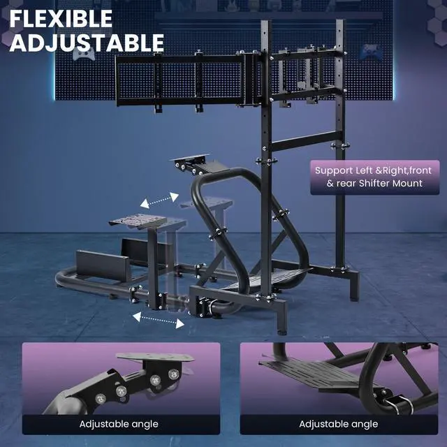 Triple-Screen Immersion, True Racing Cockpit: Supports three 27"/32" monitors for panoramic views. Build your ultimate immersive racing environment. Easily adjust screen angles and height to achieve the perfect driving posture