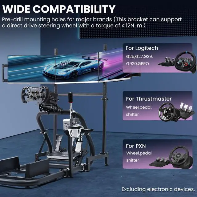 Attention required:This racing simulator cockpit does not include game equipment such as steering wheel, pedals, seat and gear shifter