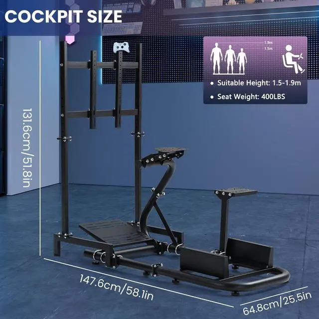 Durable Construction:Made of 1.5mm thick alloy steel tubes with an X - shaped support design, this cockpit can support up to 400 lbs, suitable for all users and easy to maintain