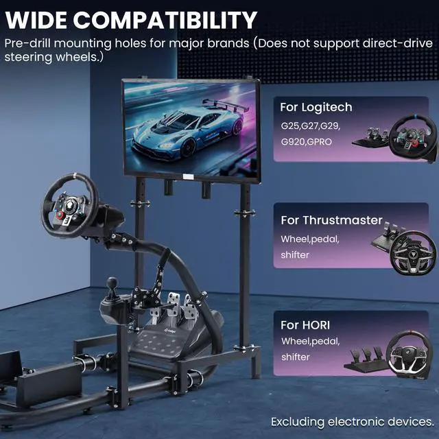 Wide Compatibility:The racing simulator cockpit universal mounting plate fits Logitech G29/G920/G923, Thrustmaster T300/T248, and Fanatec CSL DD