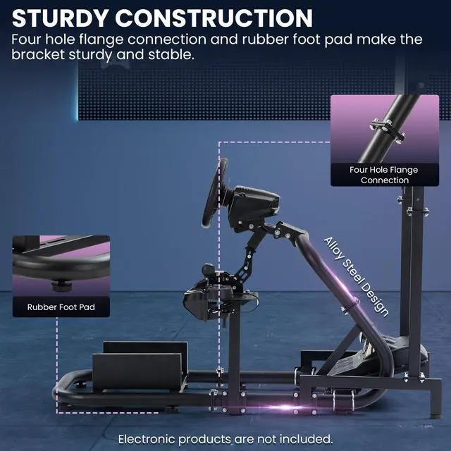 Unique Design: Through the unique design of engineers, the single arm of the support bar is connected to the pedal position, which makes the racing steering wheel bracket more stable while increasing the aesthetics.
