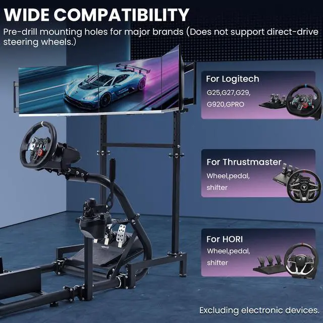 Wide Compatibility:The racing simulator cockpit universal mounting plate fits Logitech G29/G920/G923, Thrustmaster T300/T248, and Fanatec CSL DD