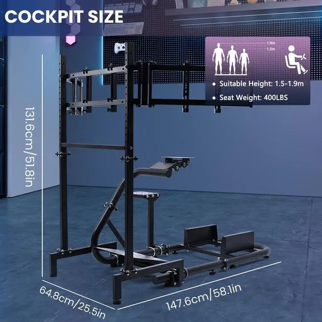 Durable Construction: Made of 1.5mm thick alloy steel tubes with an X - shaped support design, this cockpit can support up to 400 lbs, suitable for all users and easy to maintain