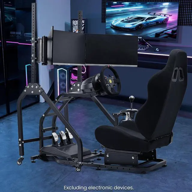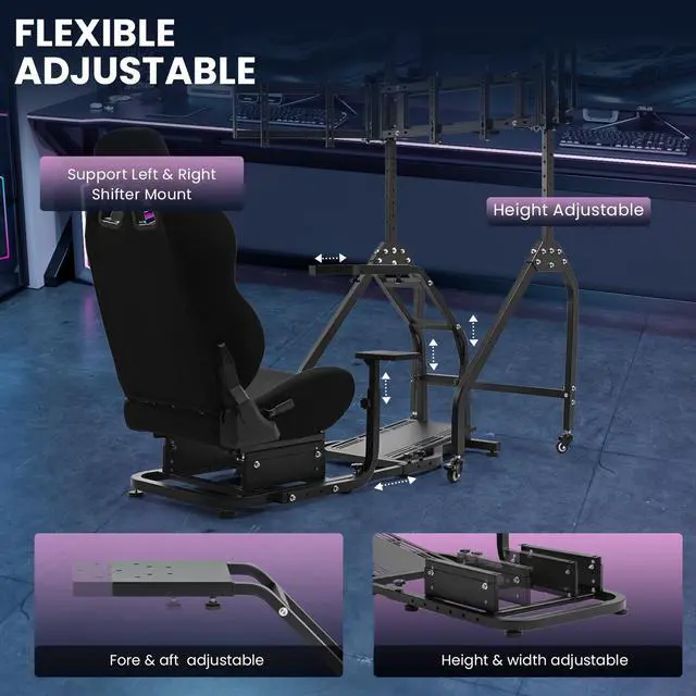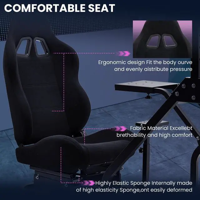 Minneer Steering Wheel Stand Racing Cockpit with Black Seat and Monitor stand ,Unobstructed Design for Both Legs,Fit for Logitech/Thrustmaster G29,G920,G923,G25&T300RS,T80,T150 Adjustable, No Steering