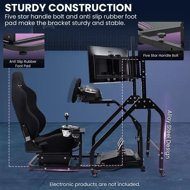 Standing Stand DesignThis upgraded racing stand enhances pedal and base support and adds seat support for improved professionalism and dual stability. Unique shape popular with racers.