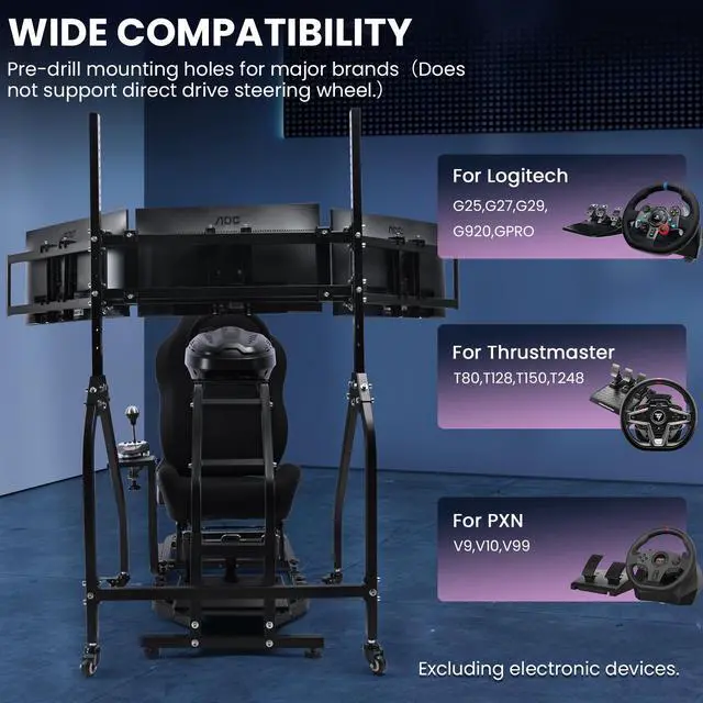 Bearing weight strongWith an excellent 120lb weight capacity, the monitor stand is compatible with up to three 27- or 32-inch monitors of all types, and its full range of adjustments makes it easy to enhance your racing experience.