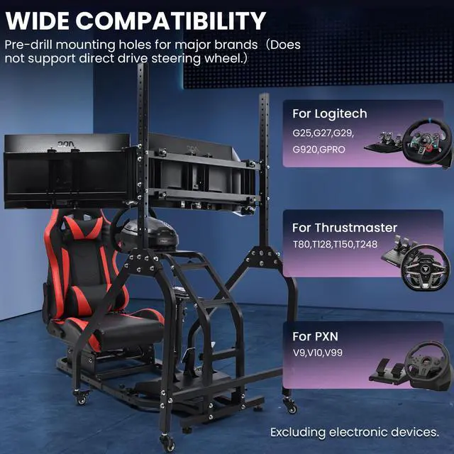 Bearing weight strongWith an excellent 120lb weight capacity, the monitor stand is compatible with up to three 27- or 32-inch monitors of all types, and its full range of adjustments makes it easy to enhance your racing experience.