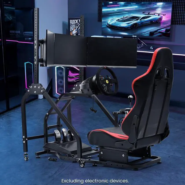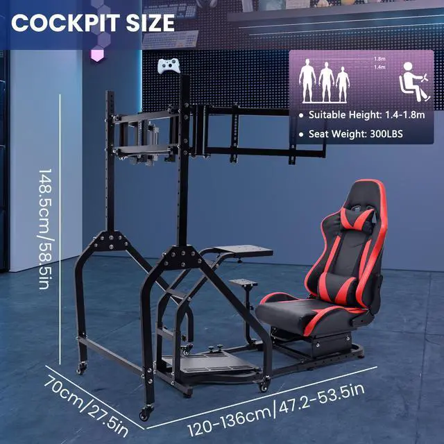 Minneer Steering Wheel Stand Racing Cockpit with Red Seat and Monitor stand ,Unobstructed Design for Both Legs,Fit for Logitech/Thrustmaster G29,G920,G923,G25&T300RS,T80,T150 Adjustable, No Steering W
