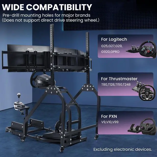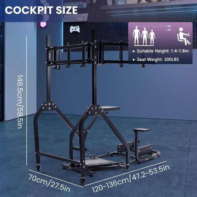 Bearing weight strongWith an excellent 120lb weight capacity, the monitor stand is compatible with up to three 27- or 32-inch monitors of all types, and its full range of adjustments makes it easy to enhance your racing experience.