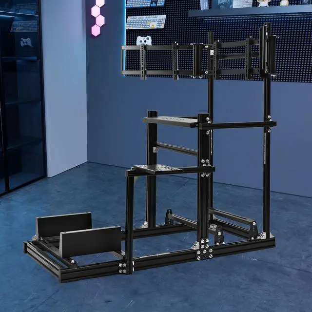 Modular Expandable DesignThe T-slot aluminum structure supports expansion with monitor mounts, trays, and flight simulation equipment. The oversized shifter plate accommodates both handbrake and shifter, with left/right interchangeable layout to meet diverse simulation needs