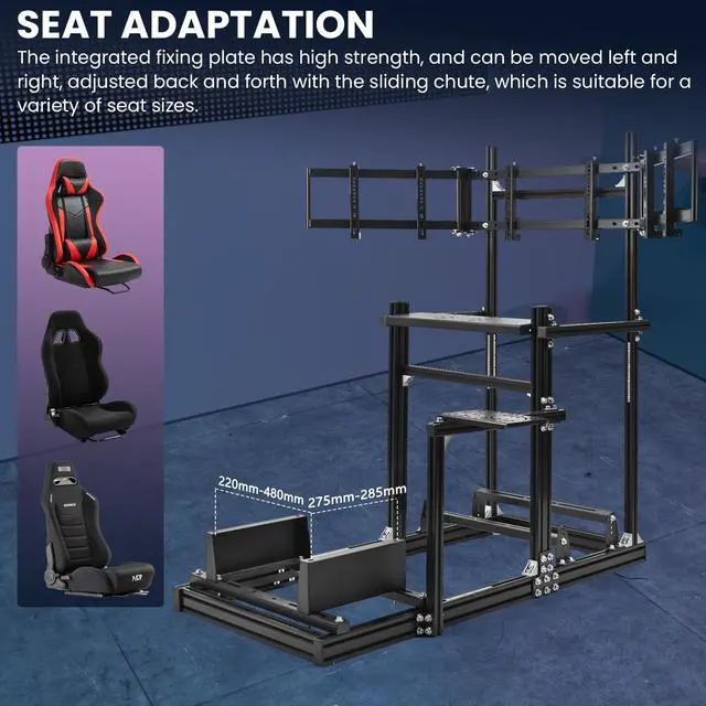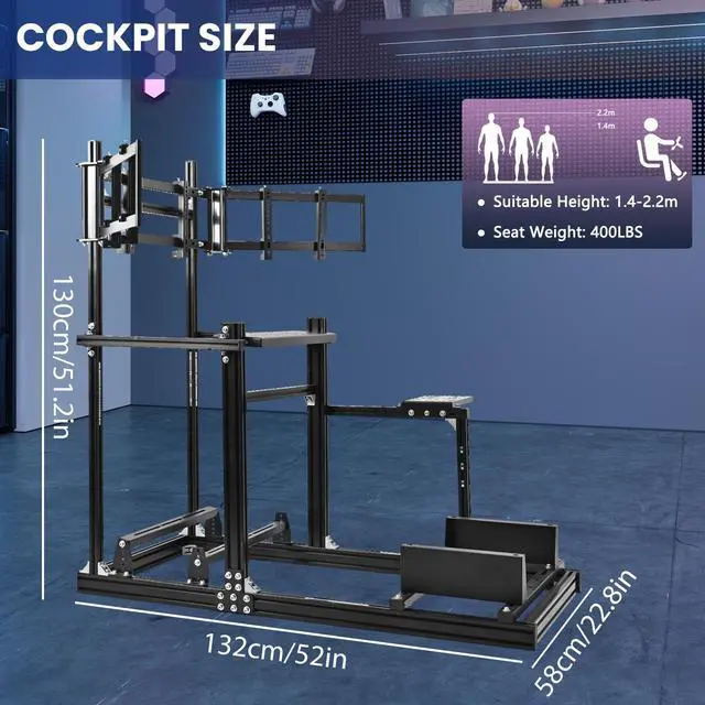 Wide Compatibility & High Load CapacitySuitable for users from 1.4m to 2.2m in height. The seat plate supports up to 400 lbs, and the pedal plate supports 150 lbs, stably accommodating various racing gear and users of different body types