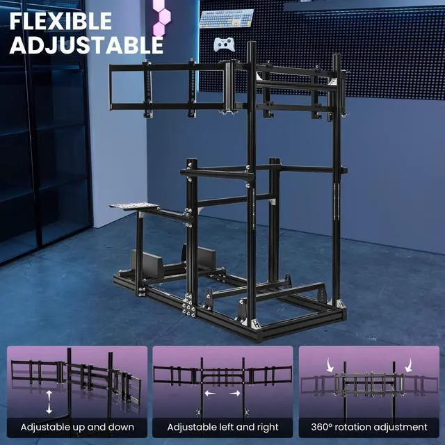 Minneer Racing Sim Cockpit 3060&3030 Aluminium Cockpit, Compatible with Logitech/Thrustmaster/Fanatec Direct Drive Motors,Racing Stand with Triple Monitor Stand Steering Wheel and Pedals not Included