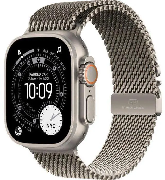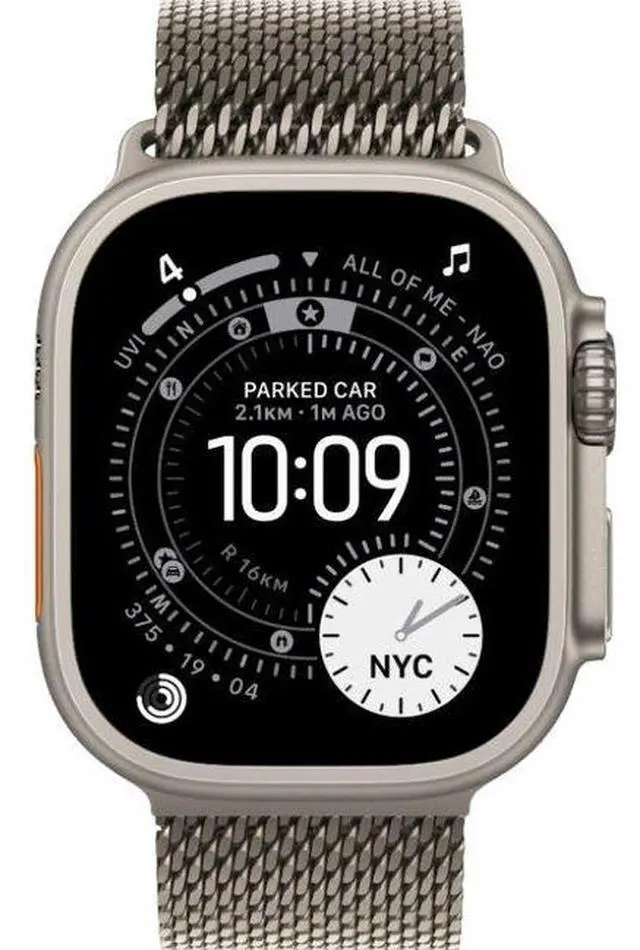 Controls: Customisable Action button | Digital Crown with haptic feedback | Side button | Double tap and wrist flick gestures | Siri