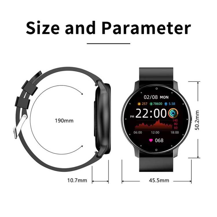 4. Functions: waterproof, audio-visual entertainment, photo taking, step counting, social entertainment, smart reminder, remote Selfie, information push, motion tracking, mobile positioning, tracking/alarm, health monitoring, sleep analysis