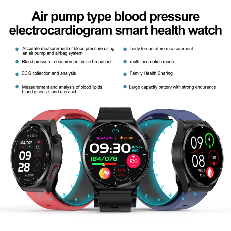 14. Health Features: Accurate air pump + air bag true blood pressure test, ECG electrocardiogram, blood sugar monitoring, independent and accurate blood oxygen, body temperature, blood lipids, uric acid, respiratory rate, heart rate, sleep monitoring, remote care for relatives and friends.