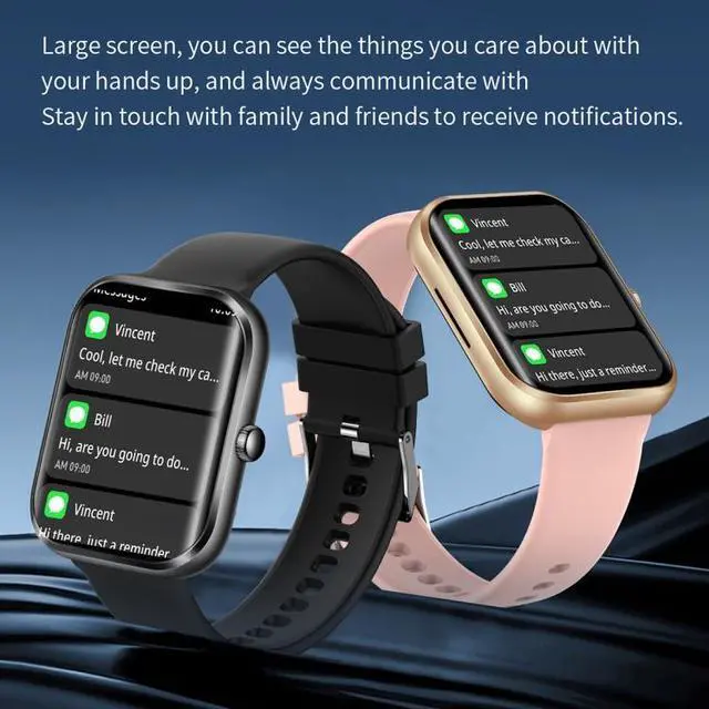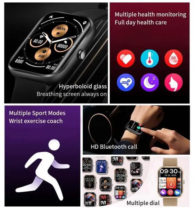 14. Main functions: Step counting, sleep, heart rate, blood oxygen, blood pressure monitoring, 100+ exercise modes, weather, camera control, music control, stopwatch, alarm clock, timer, sedentary reminder, message and call reminder, brightness adjustment, mute, QR code, rest screen display, physiological period calendar, exercise records, voice assistant, etc