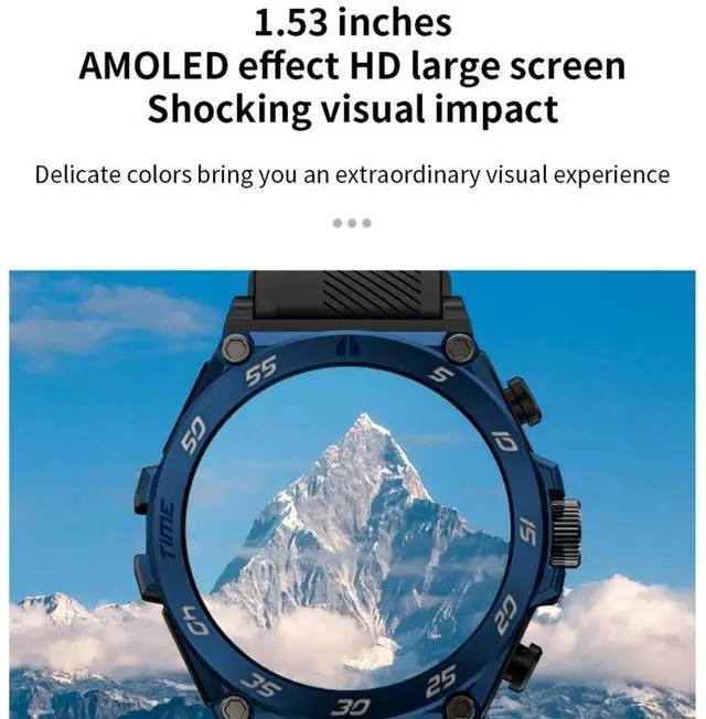 11. Watch Features: Sporty business appearance, metal craftsmanship, TPU high-end sports strap, built-in music storage, full circle touch + mechanical button dual operation, encoder knob, 3 sets of UI styles, BLE 5.0 version, 400mAh real capacity large battery, strong endurance standby for over 25 days. Powerful sound output for up to 4 hours (at maximum volume). The smart bracelet features 24-hour accurate heart rate monitoring, blood pressure monitoring, blood oxygen monitoring, sports monitoring, mileage, calorie consumption, sleep records, message reminders, remote control photography, massive free dial downloads, and DIY dial creation.