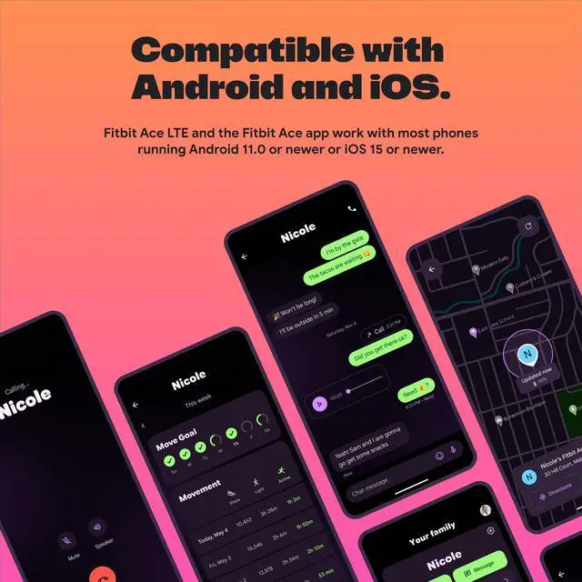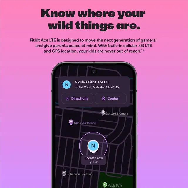 Fitbit Ace LTE is the first-of-its-kind kids smartwatch designed to move the next generation of gamers. Keep them active with fun games and daily goals that reward different types of movement. Collect new bands to unlock more rewards. And with secure calling, text messaging, and location sharing, they're never out of reach.