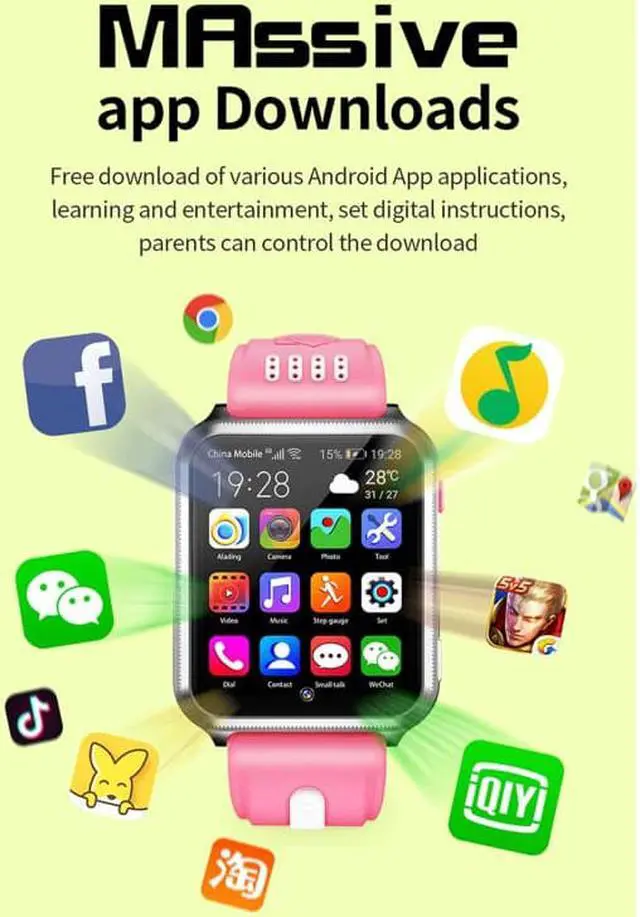 11. Support MP3 function, recording function, video recording function, alarm clock, real-time step counting, electronic fence, real-time trajectory, tracking and positioning, voice intercom, real-time monitoring, forbidden calls from strangers, class schedule, weather forecast, AI voice robot, etc.