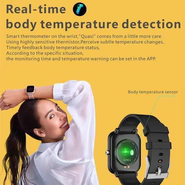 9. Functions: continuous heart rate, body temperature detection, blood oxygen saturation, blood pressure monitoring, brightness adjustment, raising hand to brighten the screen, incoming call reminder/rejection, information prompt, multiple sports modes, weather forecast, flashlight, clock display, alarm clock, Music control, changeable dial, custom wallpaper, sedentary reminder, do not disturb mode, search bracelet, remote camera, sleep monitoring, step counting, distance, calories, etc.