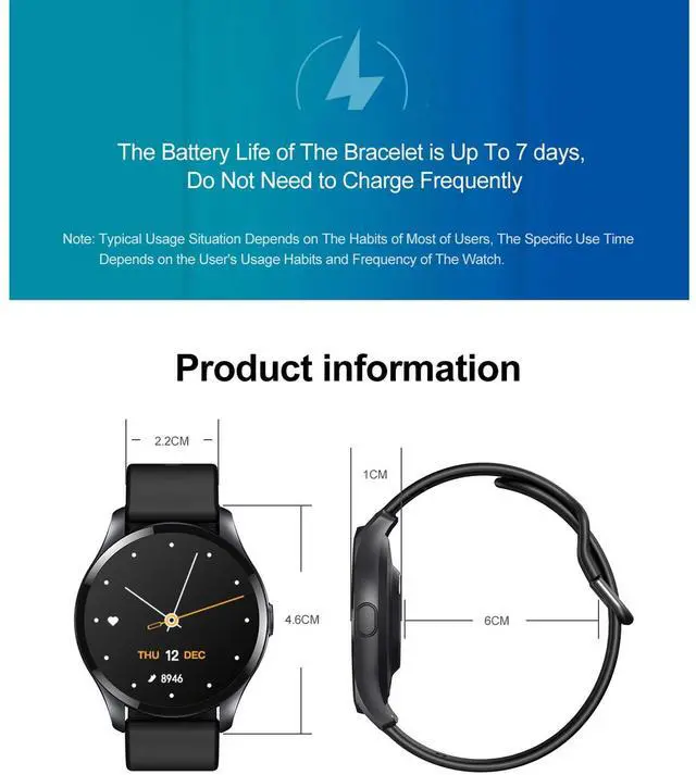 11. Functions: pedometer, calories, sleep monitoring, alarm clock reminder, multi-sports mode, sedentary reminder, call reminder, SMS reminder, remote camera, heart rate monitoring, blood oxygen monitoring, body temperature monitoring, etc.