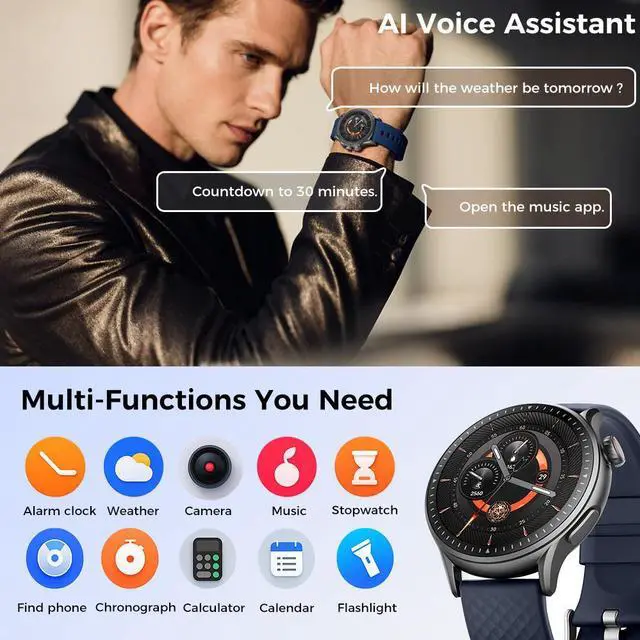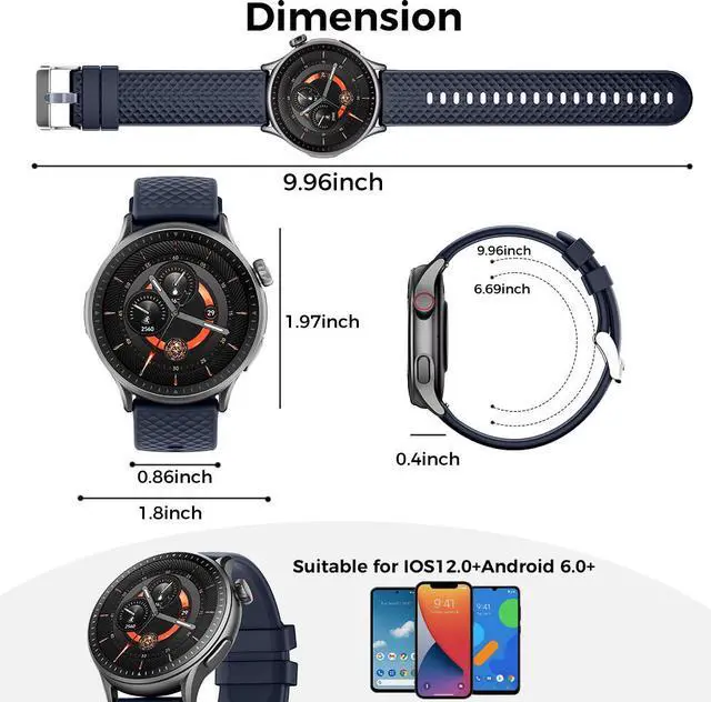 • Other practical functions:the sports smart watch is compatible with smartphones that use iOS 12.0/Android OS 5.1 or higher.It contains many daily useful tools, such as Bluetooth
