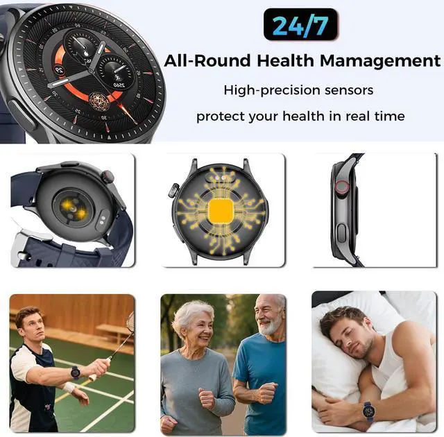 Wise Time1.43" HD Round Screen Smartwatch Fitness Tracker With Heart Rate Sleep Monitoring Step Tracking 3ATM Waterproof Ready For Outdoor Activities Swimming And Daily Health Tracking - Best Wearable