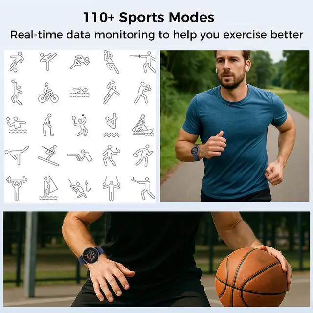 100+ sports modes and smart life assistant: the fitness watch has 100+ sports modes to meet your different sports styles. You can choose the appropriate mode according to your sport (walking, running, cycling, jumping, badminton, basketball, football, mountaineering, tennis, yoga, fitness, dancing, etc. ). During your workout, it records the steps, distance and calories burned. which can check fitness data analysis to help you achieve better training results.