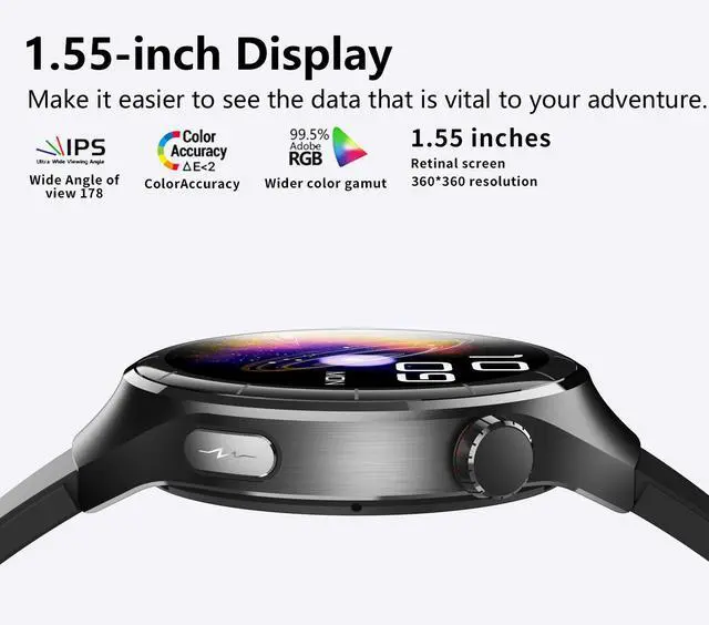 1.55 HD Screen and Multiple Face:Smart watch for men women is equipped with a hd full touch color screen, delivering exceptional picture quality and highly responsive touch sensitivity, which can bring you a unique visual and better interactive experience, lock screen and wake up easily by raising your wrist.