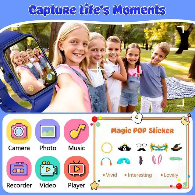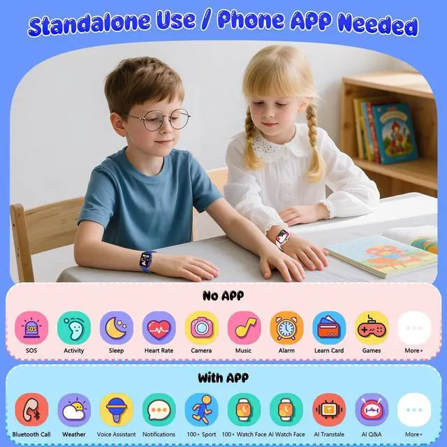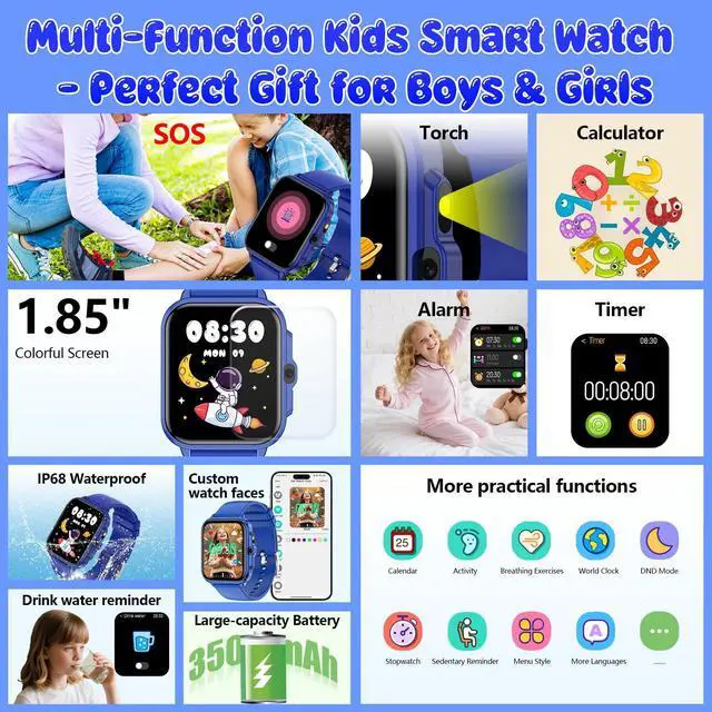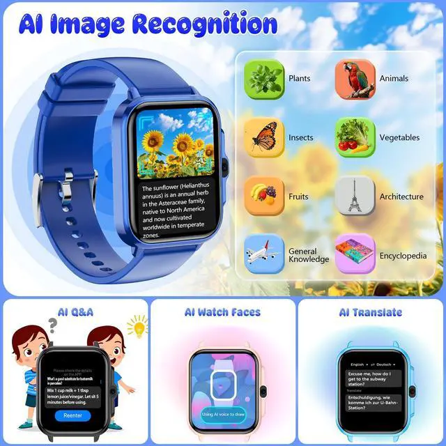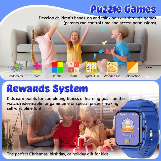 Multifunctional Kids Watch : This smart watch for kids is designed for boys and girls aged 4-12, integrating games, learning, camera, music, health monitoring, and activity tracking. It also includes SOS alert, flashlight, AI functions, alarm clock, calculator, and more. This is a great toys and gifts for girls and boys aged 4-12 for birthdays, Christmas, or other holidays.