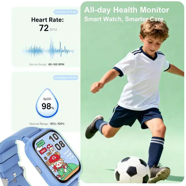Blood Oxygen: Equipped with a high-precision sensor, kids smart watch smartwatchtracks blood oxygen levels, Stable blood oxygen ensures your kid stays energetic during daily activities and outdoor adventures