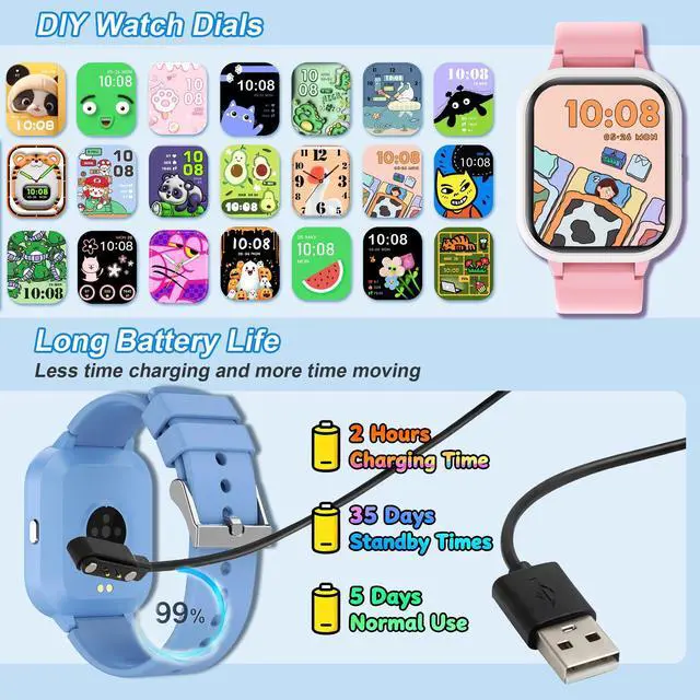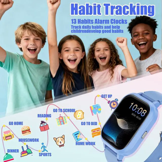 Watch Face Fun: 10 built-in cute designs (dinosaurs, cats, avocados) + DIY options via the app—every day gets a fresh, unique look!