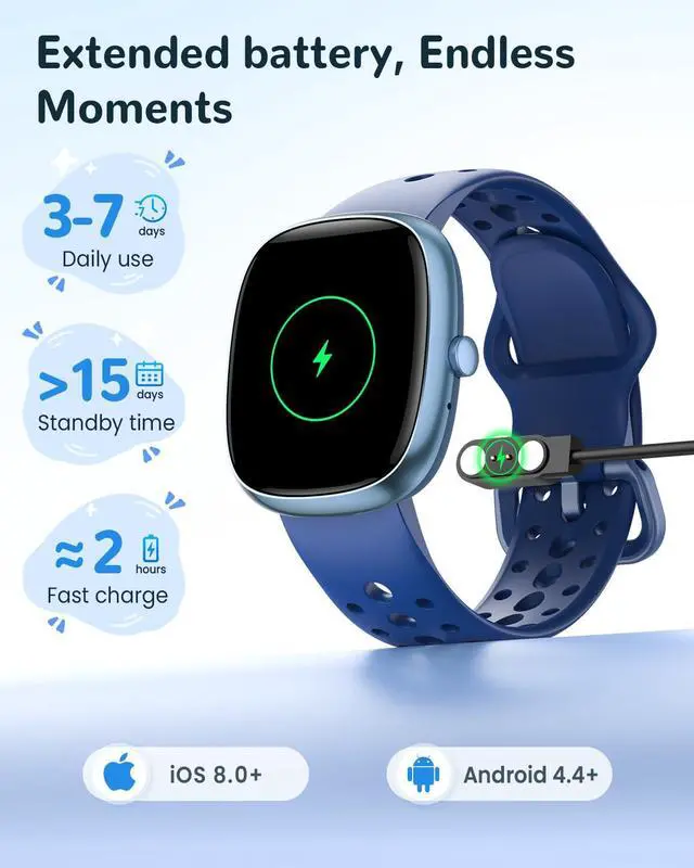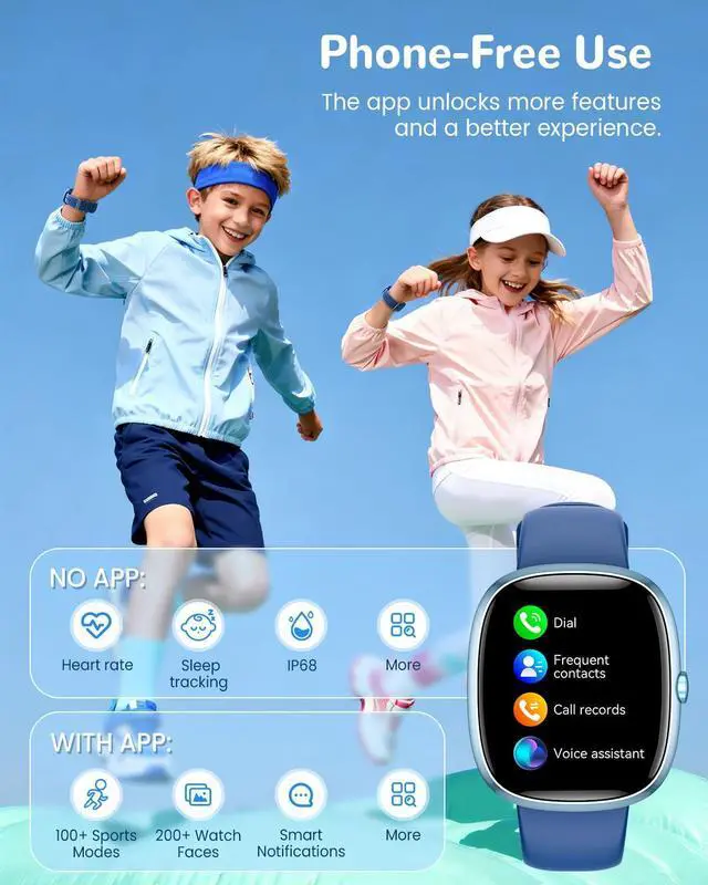 Standalone & Connected Flexibility Whether paired with a phone or used independently, this kids smart watch delivers full functionality. It displays time, date, and automatically tracks heart rate, blood oxygen, sleep, and daily stepsno app required. For extended features, connect via app to receive smart notifications, call alerts, music control, a device finder, and access to 200+ watch faces (compatible with Android 4.4+ and iOS 8.0+).