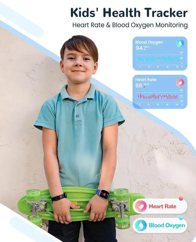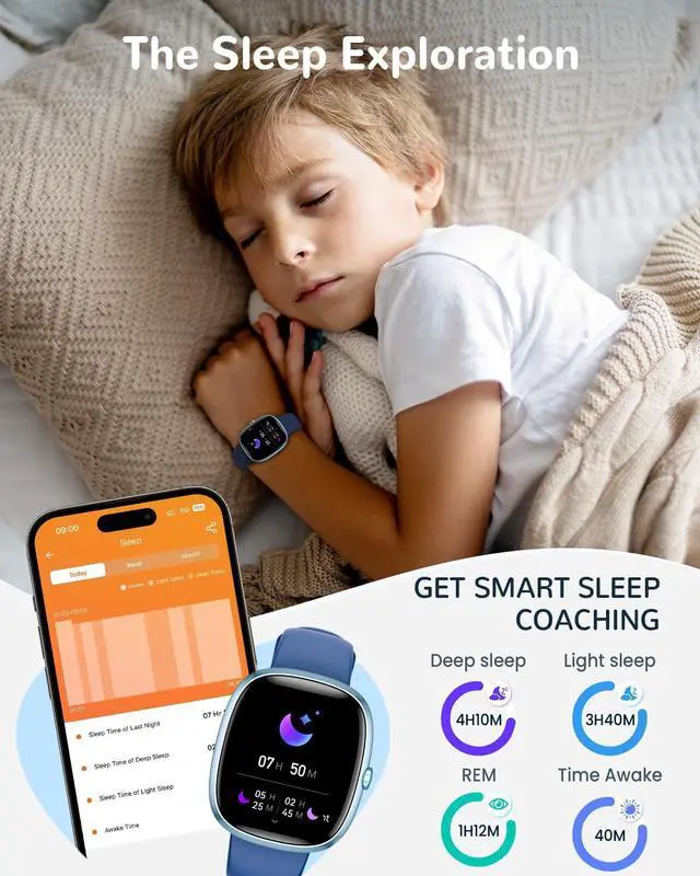 24/7 Health & Sleep Insights Monitor your childs well-being with all-day heart rate, blood oxygen, and sleep tracking. The watch for kids automatically analyzes sleep stagesdeep, light, and awakegiving parents clear insights to help encourage healthier habits and support overall development