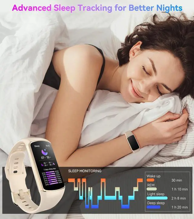 Comprehensive 24/7 Health MonitoringThe fitness watches for women and men packs 24/7 heart rate, 24/7 blood pressure and blood oxygen monitors. You could check those real-time health metrics anytime, anywhere on your wrist and view the data record in the App. The heart rate monitor watch also tracks different sleep stages for light and deep sleep,and the time when you wake up, helps you to get a better understanding of your sleep quality.
