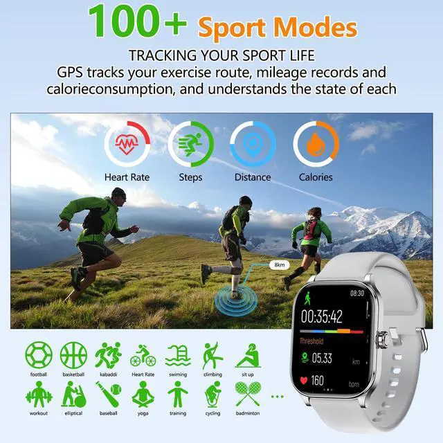 • Hands-Free Bluetooth Calling & Real-Time Notifications: Make/receive calls directly from the watch (clear HD sound) and get instant alerts for texts, emails, social media (Facebook/Instagram/WhatsApp), and app remindersno need to reach for your phone during workouts, commutes, or meetings.
